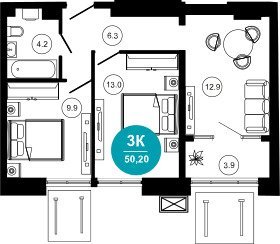 Площадь от 49.9 м2